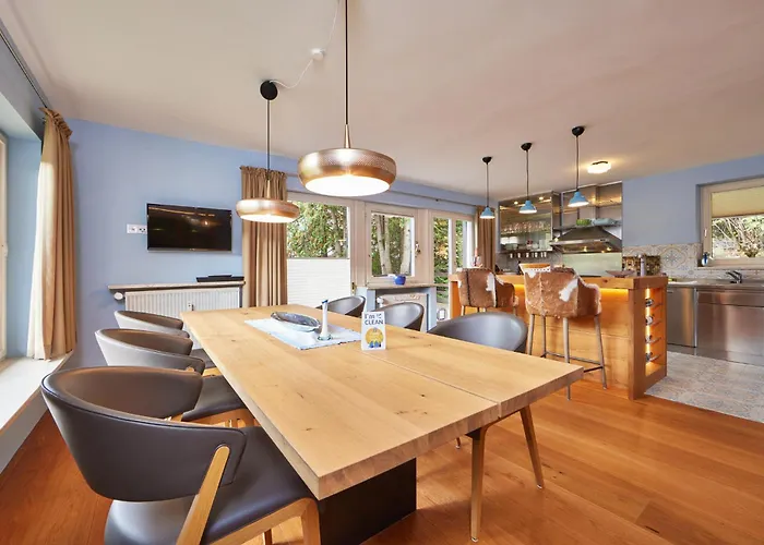 Disfruta de tus vacaciones en Garmisch-Partenkirchen en el Panorama-Chalet Ernst Baier Garmisch-Partenkirchen. Ideal para quienes buscan una experiencia auténtica, está situado a 16 minutos a pie del Große Olympiaschanze y a una distancia de 1 km del Estadio Olímpico de Garmisch. El apartamento de 122 m² ofrece vistas a las montañas y cuenta con una terraza.